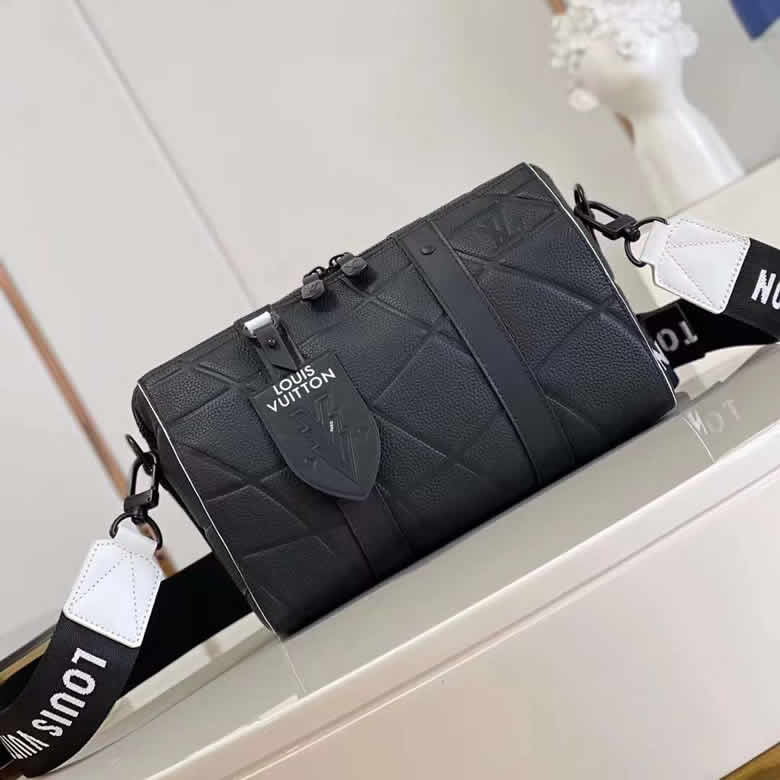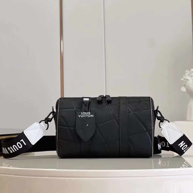 配有黑白編織肩帶和LV字母品牌皮革標簽。