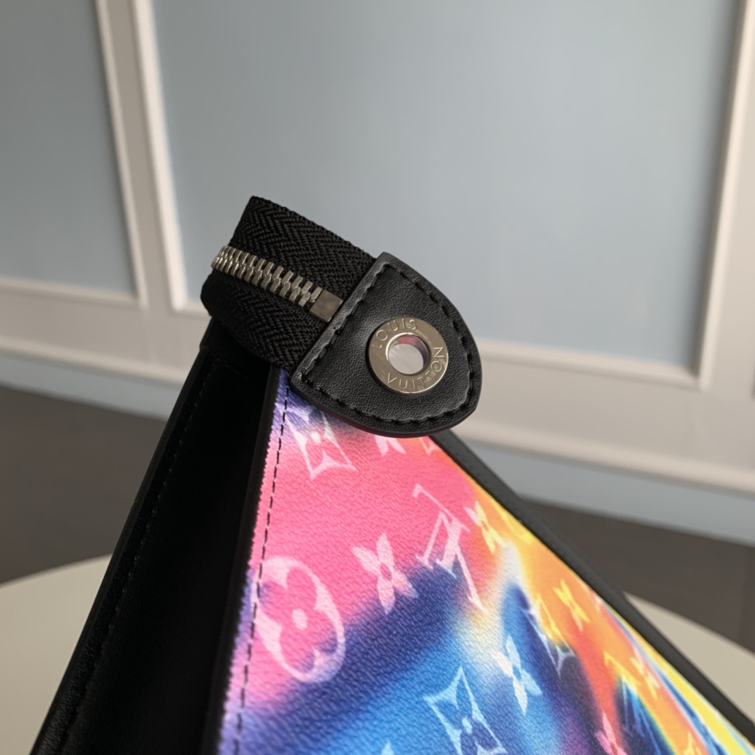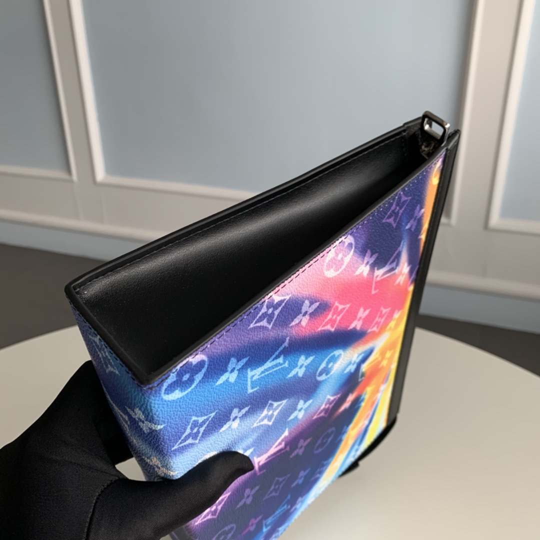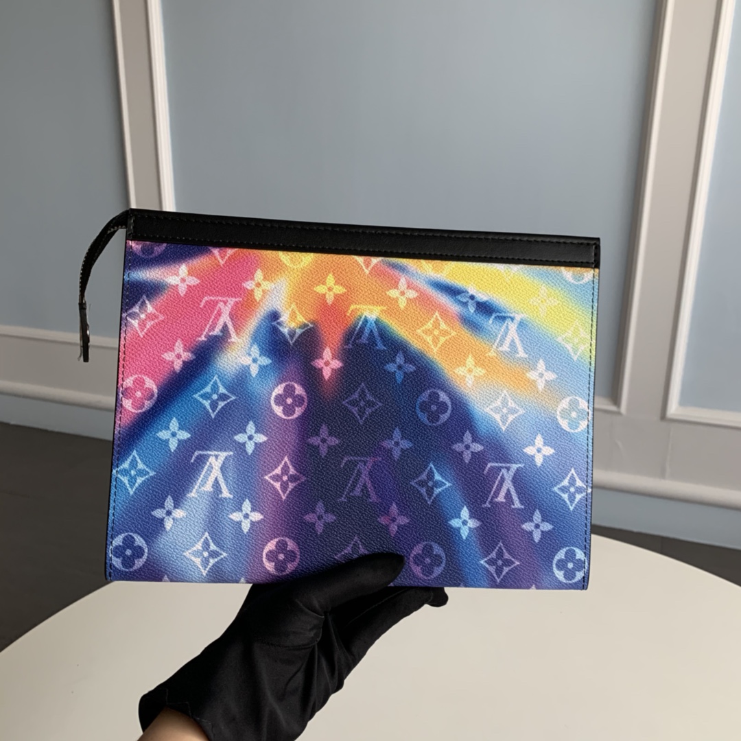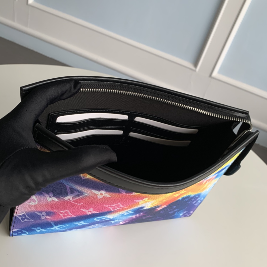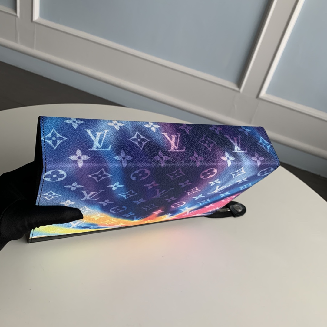 M61692極光 Virgil Abloh 於 2021-22 秋冬繫列重塑 Pochette Voyage 中號手拿包,以復古 Monogram 帆佈微妙呈現不規則 Monogram 圖案,同時醒目抒寫 louis vuitton! 標識。可作為旅行收納包置於其他手袋,亦可化身手持文件夾。 尺寸27 x 21 x 6 cm