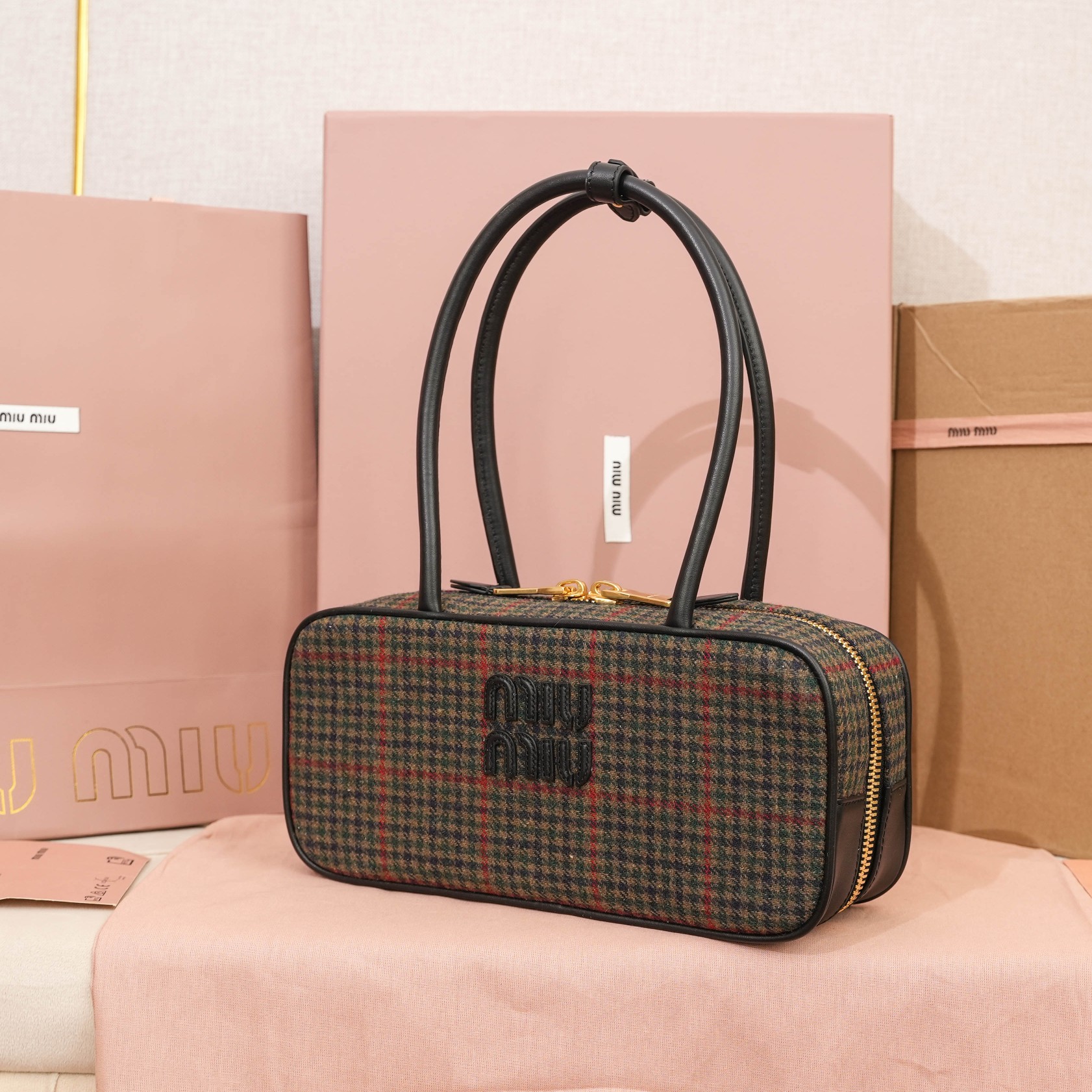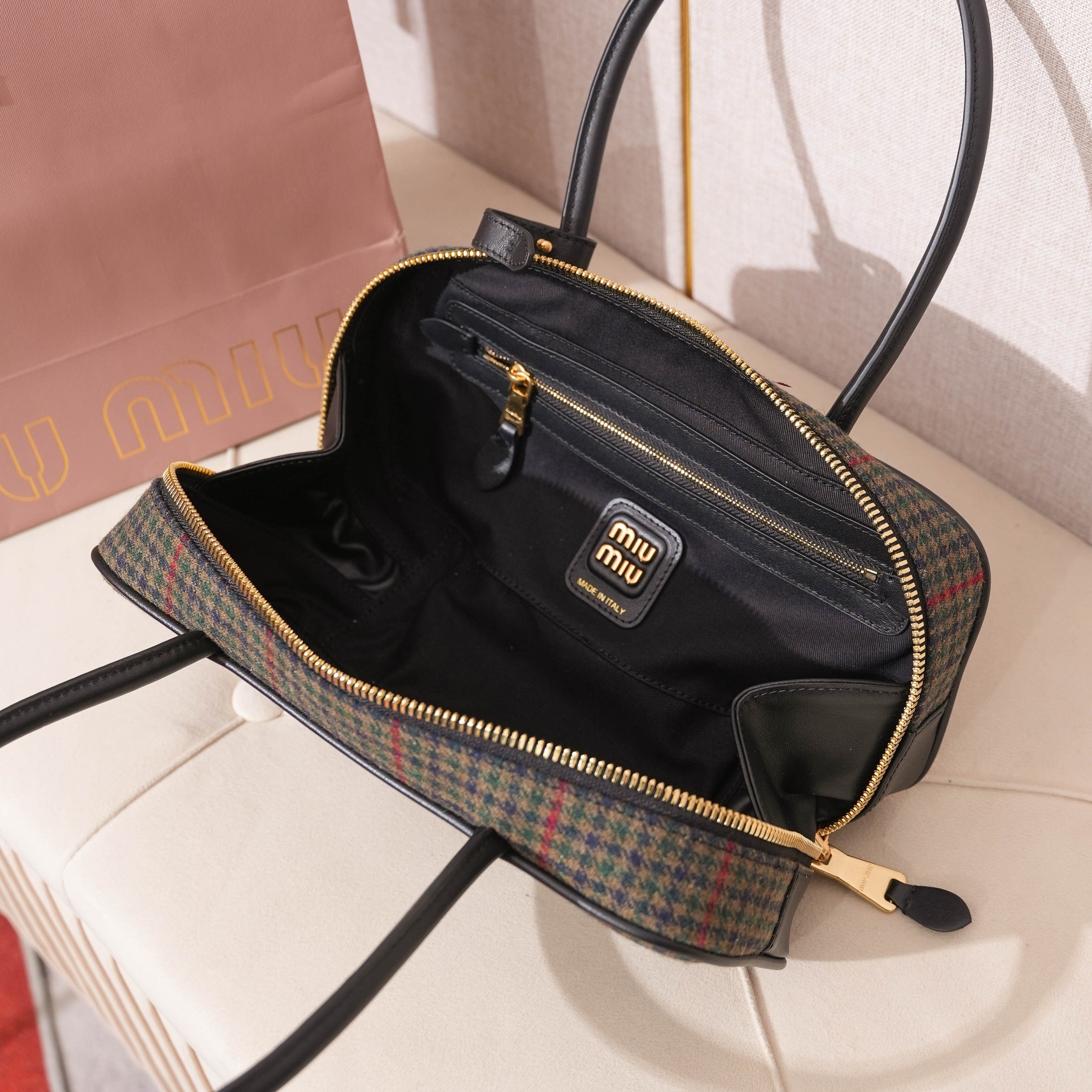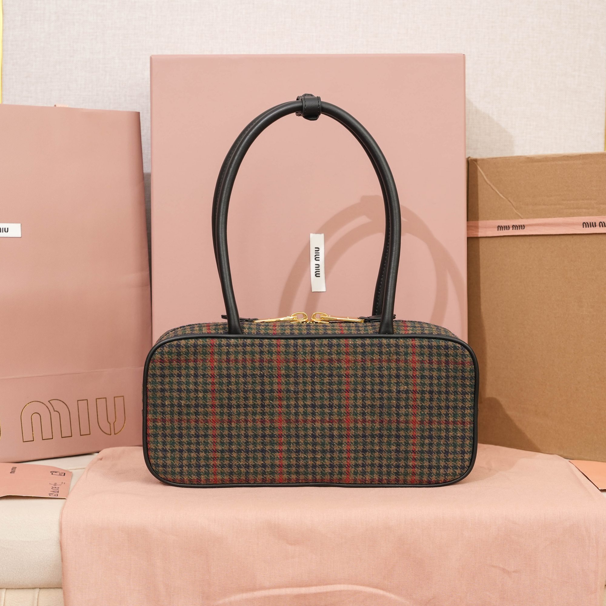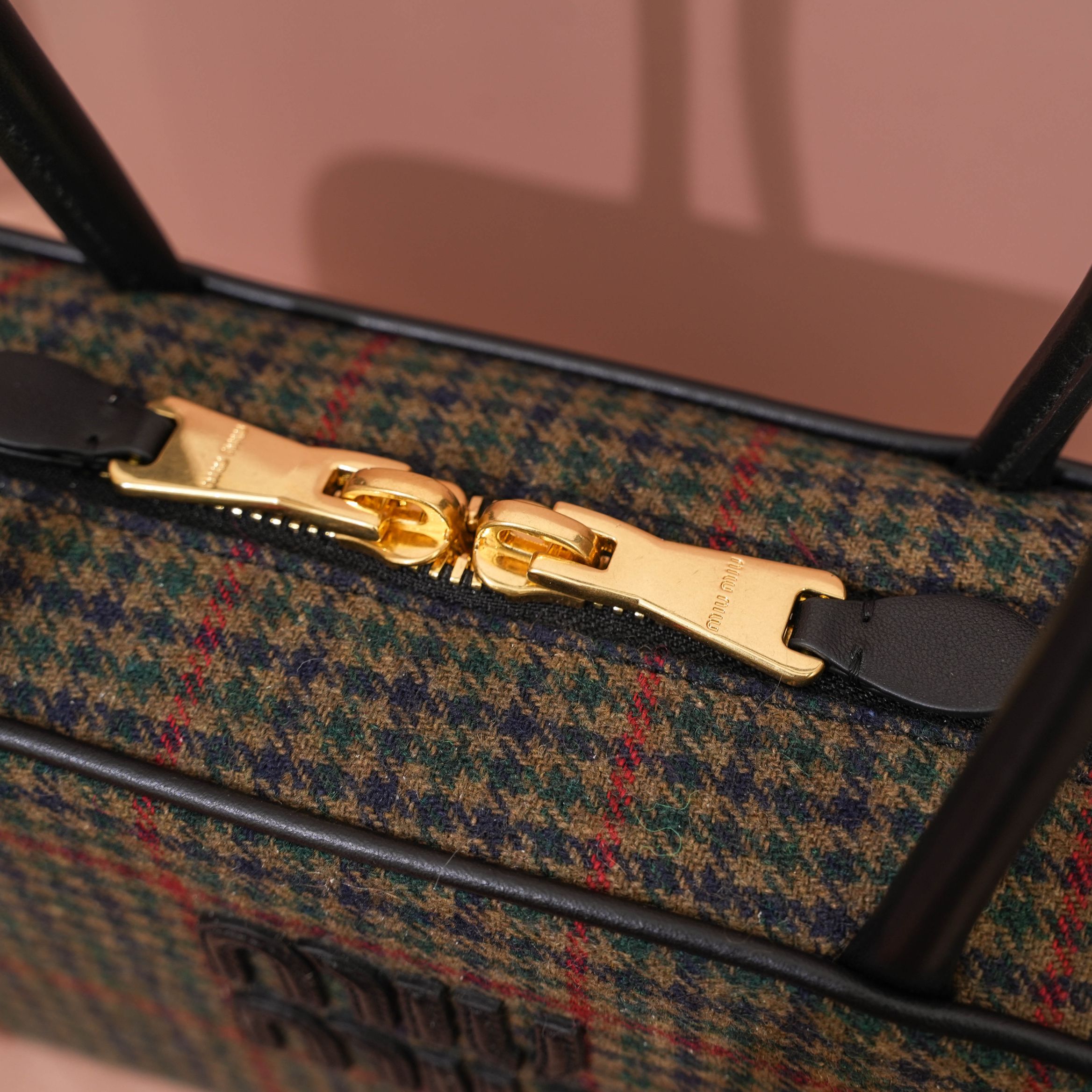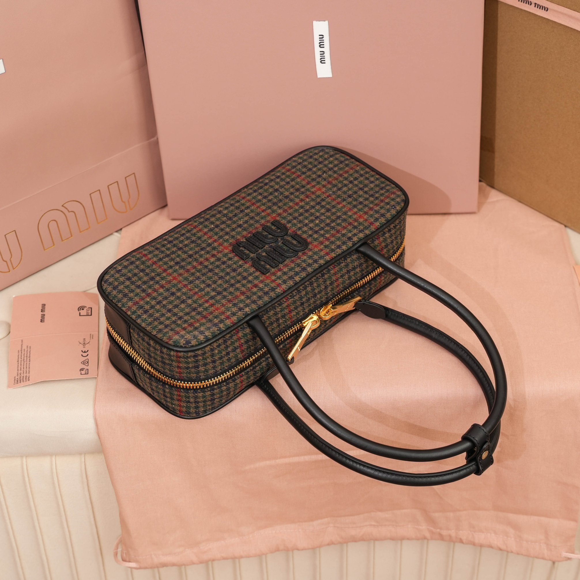 5BB147:Miu新品仟鳥格保齡球,採用全新羊毛面料搭配高級平紋小牛皮,大膽創新的設計完美詮釋了Miu不拘一格,瀟灑隨意包容的人生態度,這款包包很酷,定格精致的多功能設計,融合男裝和女裝元素,隨性慵懶,自然灑脫,充滿個性,全新的綿緞襯裏,火遍全網不是沒道理的,各大時尚搏主明星都愛背它,尺寸:28X12X9cm(配原版包裝)P800
