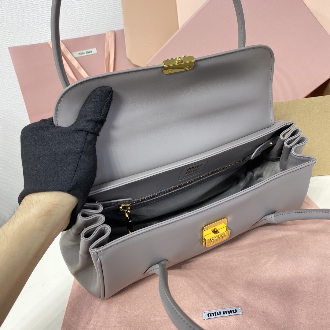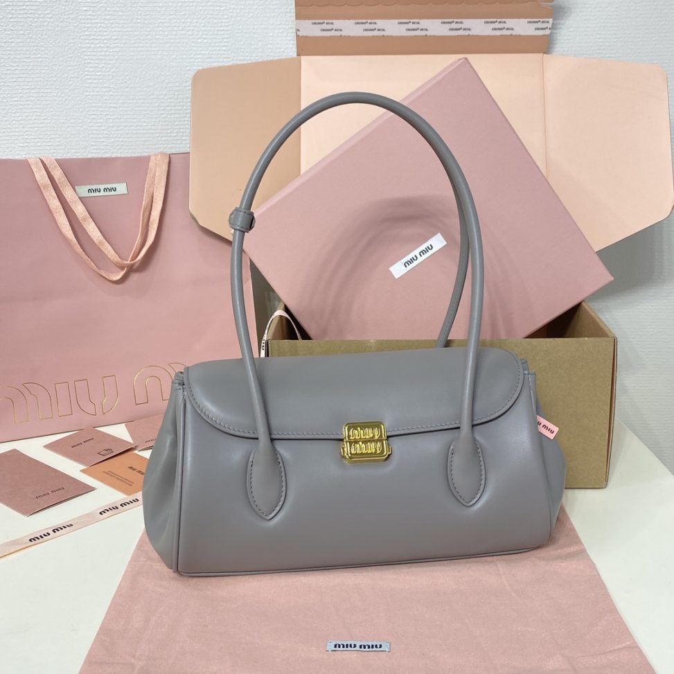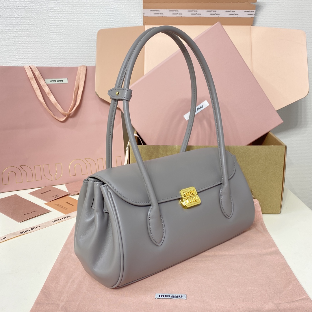 𝐌𝐈𝐔𝐌𝐈𝐔 24ss秋冬新款法棍包 法棍設計風格引領潮流新趨勢,充滿”少女情懷”圍繞著書卷氣展開,不羈且瀟灑的大小姐風 隨意的人生態度,展現專屬miumiu 女孩的獨特,不大不小剛剛好的一只可甜辣可帥氣 容量也滿足日常出門所需好看又實用 很難不愛它誒 型號:5DB265奶灰 尺寸:28.5*8*17cm
