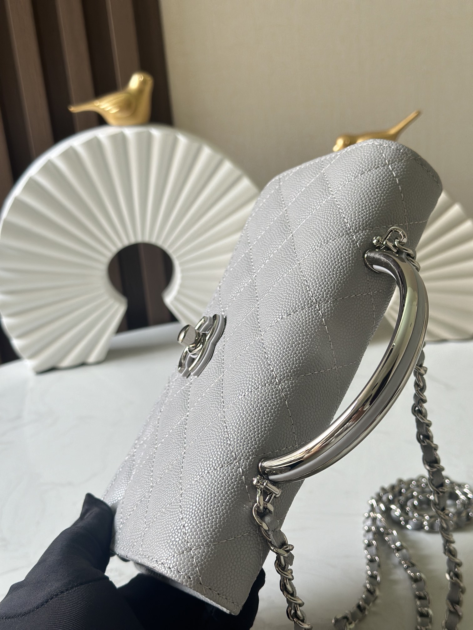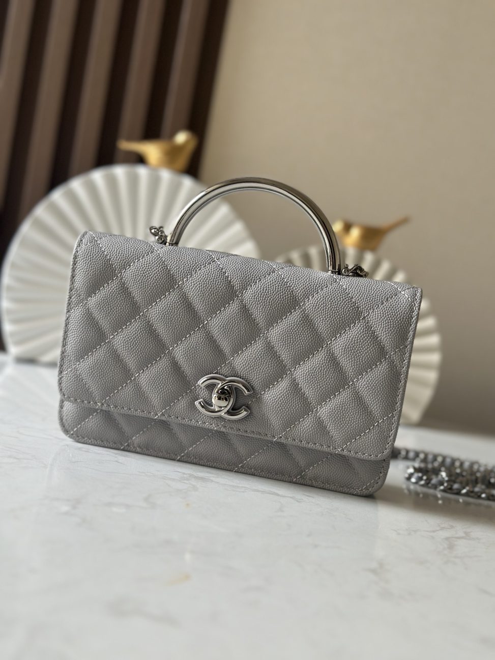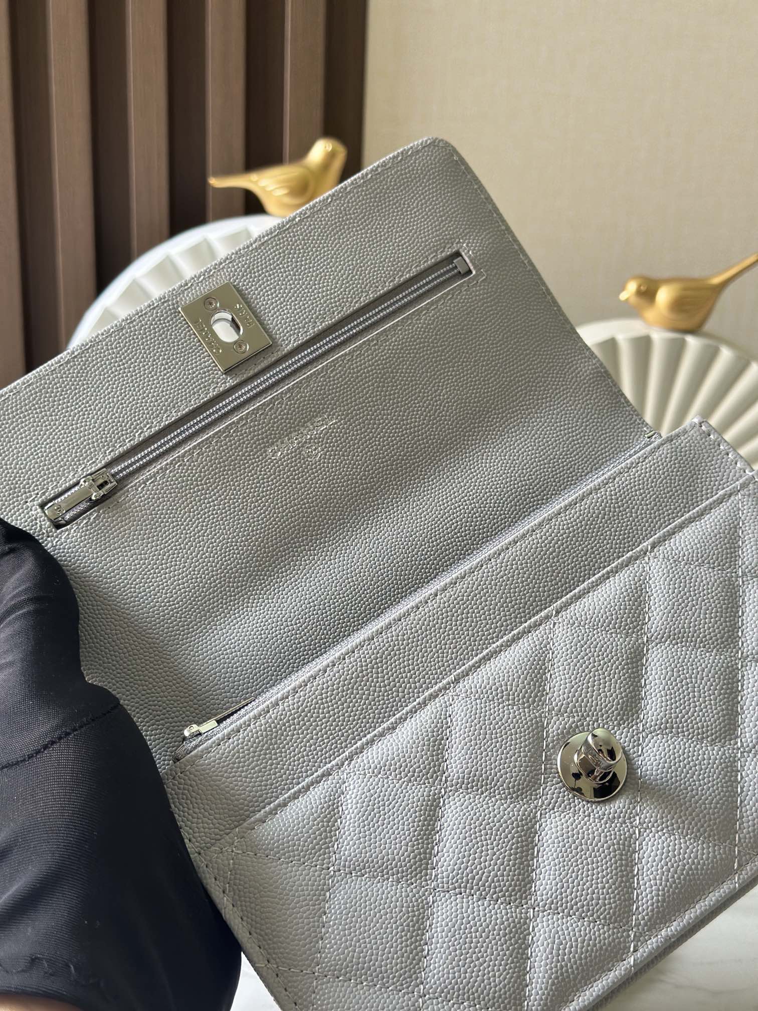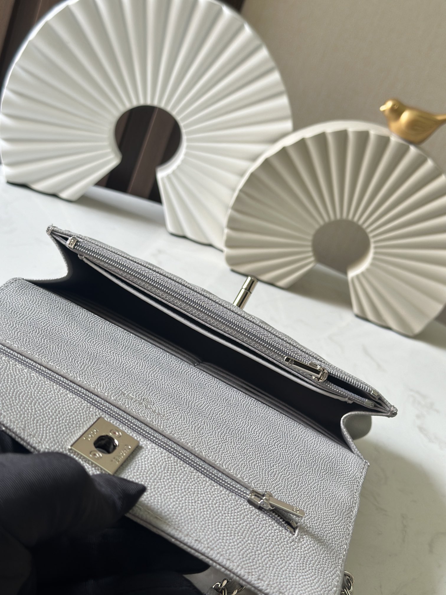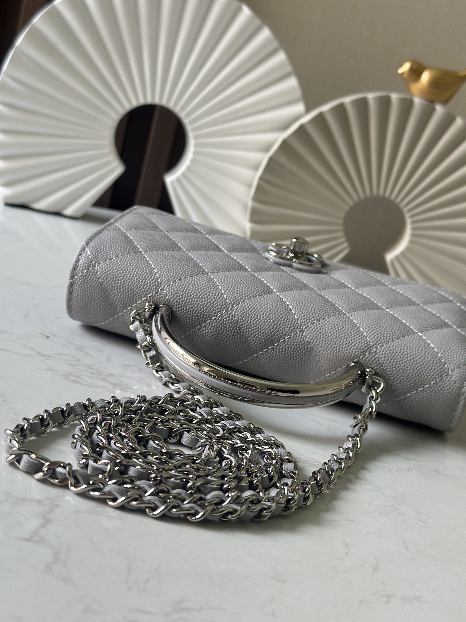 P870 新款 出貨 Chane 25P 275p woc空姐包 琺瑯扣樹脂手腕 隱藏款吧!黑銀配色+手柄可鹽可甜,銀色logo飽滿,風琴包型能裝不廢,最重要的還是25p的隱藏款,泡泡瑪特女孩就真的聽不了隱藏款三個字 尺寸:11.5×19×4cm 編碼:66028 灰色 配包裝