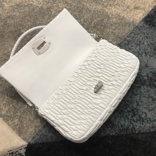 MIUMIU繆繆小提花皺褶凸紋壓花Cloquet層疊珠光羊皮鉆石鏈條包5BD233白色¥1480.00