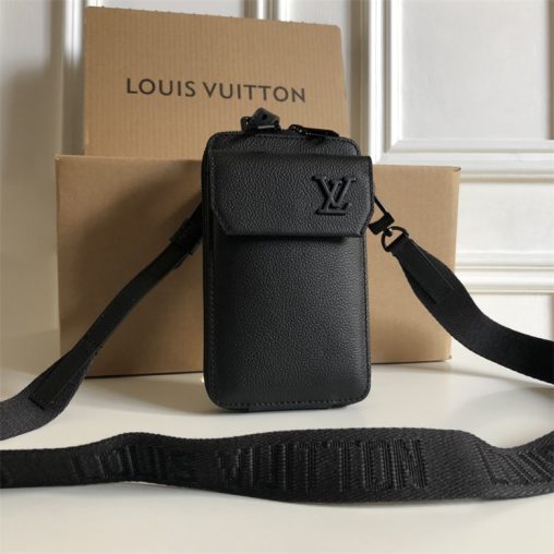 包包型號:LV/路易威登 黑色粒面小牛皮 手機包 M57…
