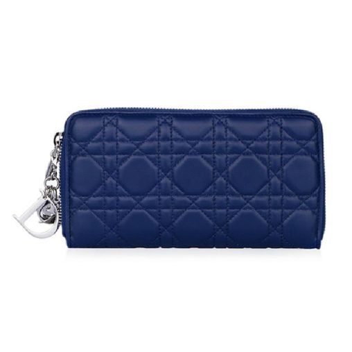 原單迪奧羊羔皮經典鉆石藤格紋女士長款錢包CAL43047…