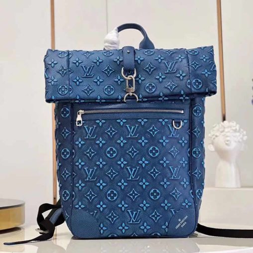 M21359藍 Roll Top 雙肩包採用壓印和印花工…