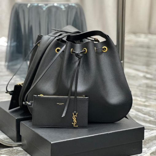 Flat Hobo bag_ 聖羅蘭全皮款抽繩包/肩背包…