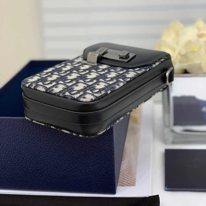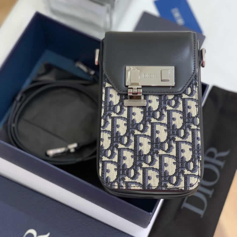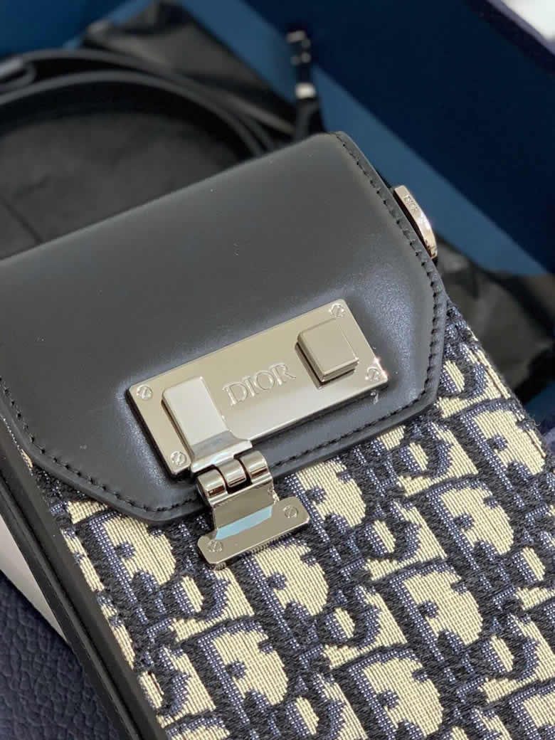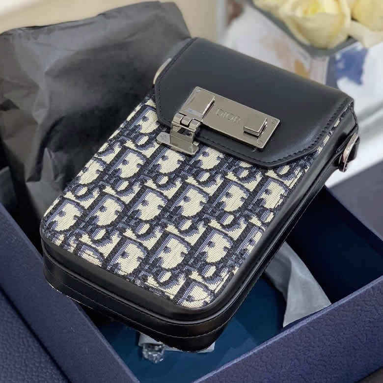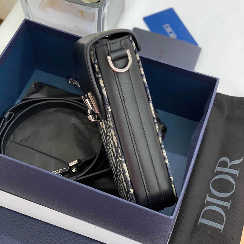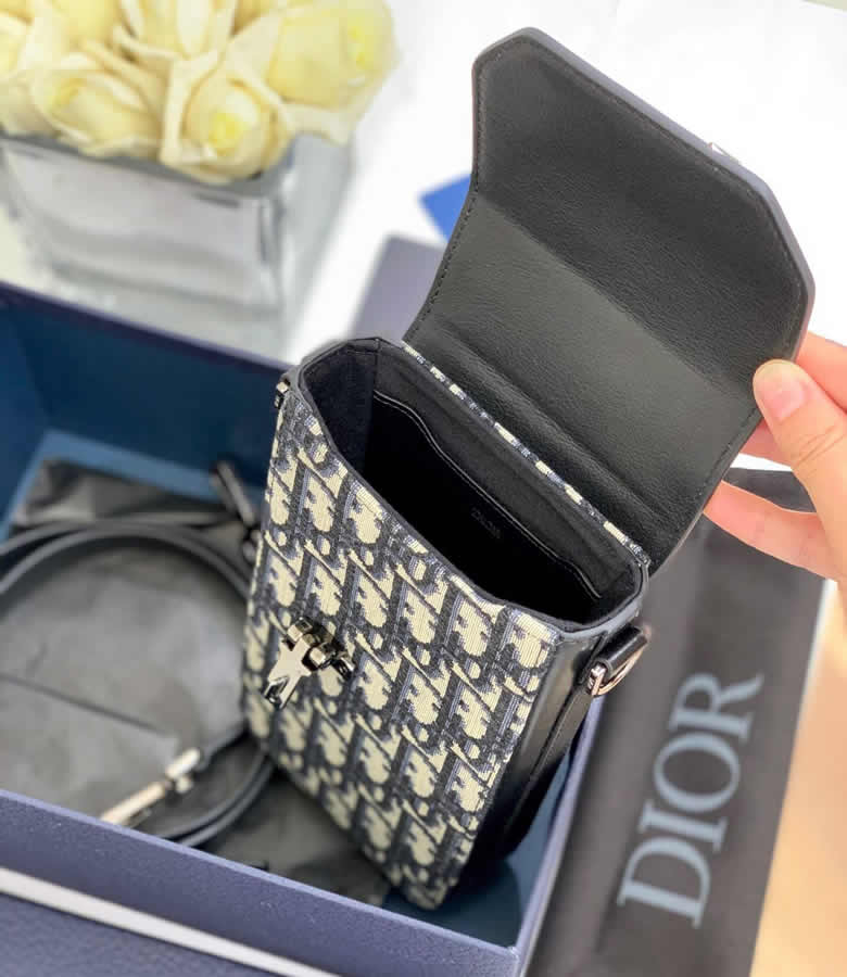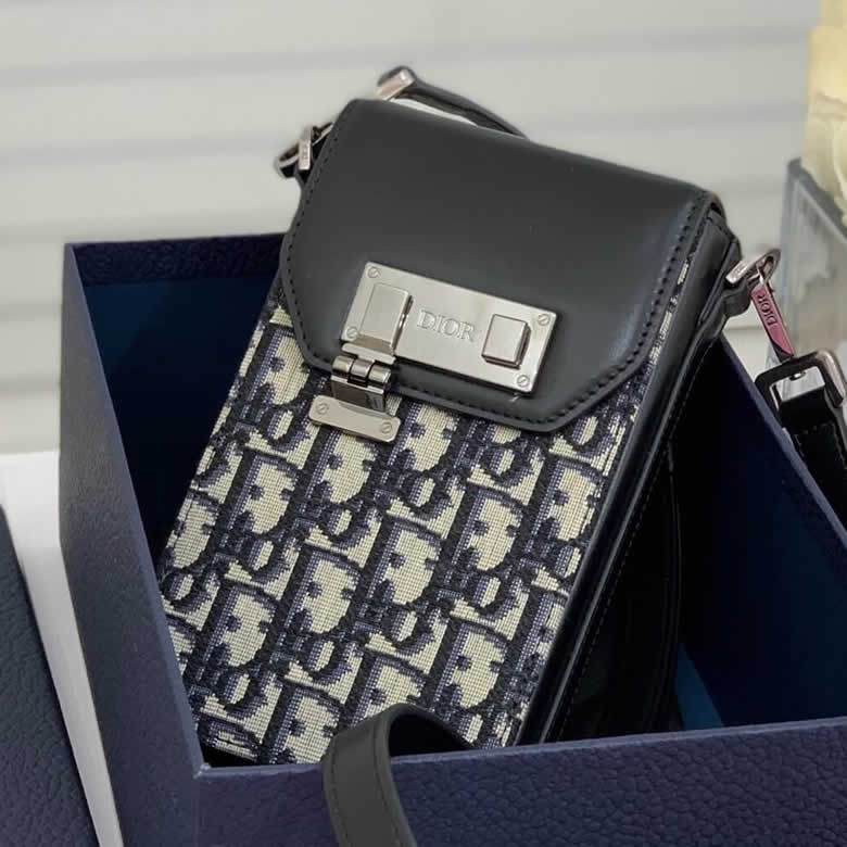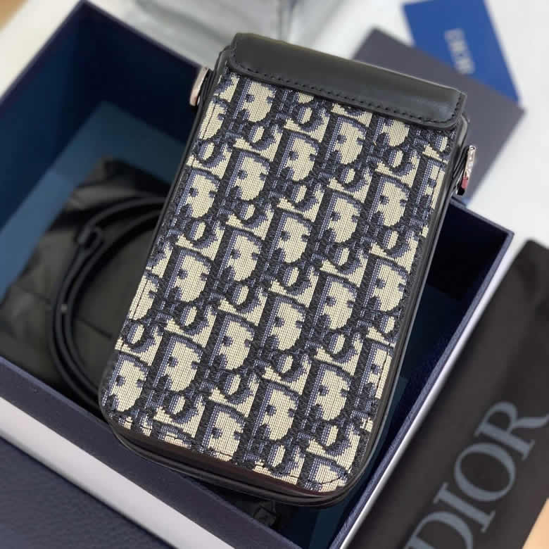 採用提花面料 精心制作,飾以米色和黑色Oblique 印花。翻蓋以黑色光滑牛皮革打造,