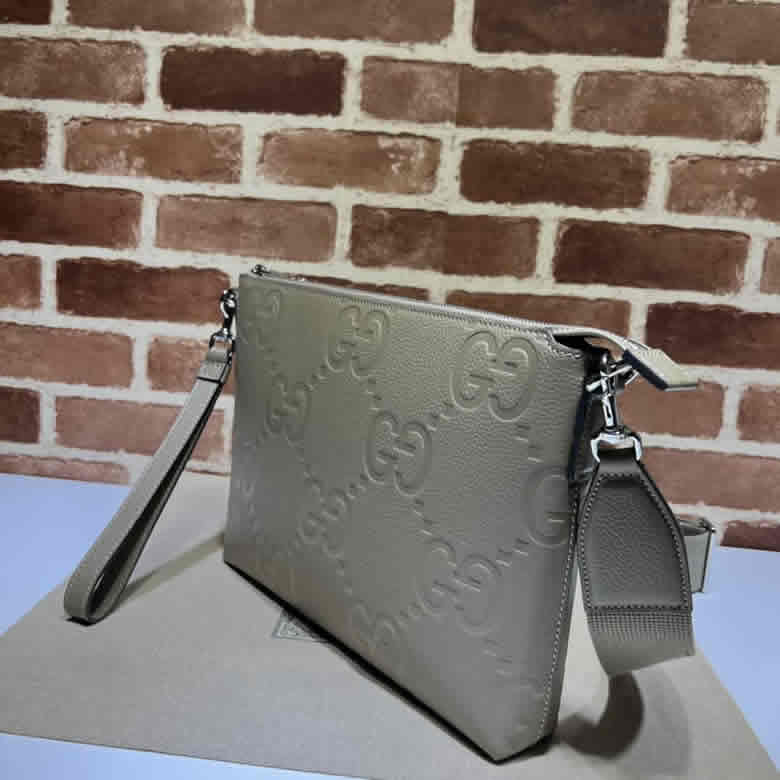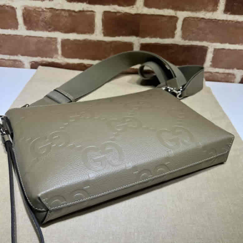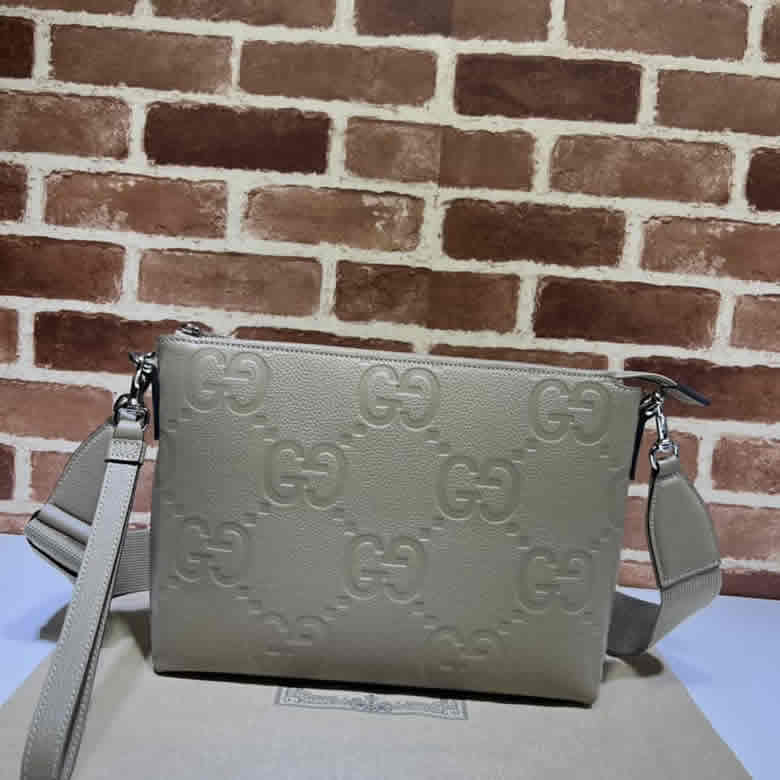 這款郵差包以灰褐色超級雙G皮革匠心打造,煥新演繹箱包繫列。