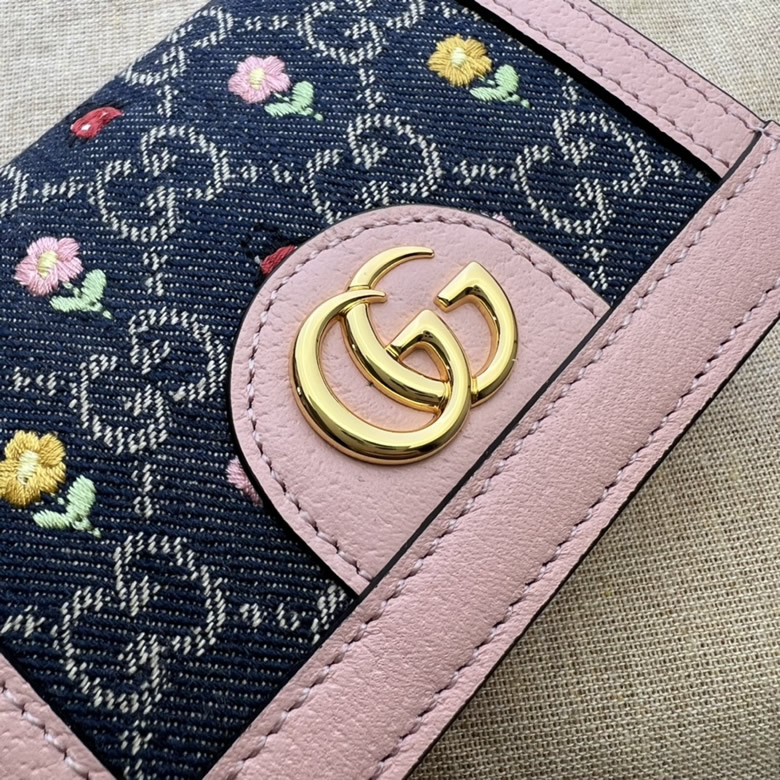 GG丹寧是品牌手袋和成衣繫列中頻頻亮相的標誌性材質。在這款單品中,具有鮮明辨識度的提花設計糅合精美雅致的花卉刺繡,通過《古馳愛的進行曲》全新時裝繫列實現華麗回歸。粉色皮革滾邊為這款Ophidia卡包