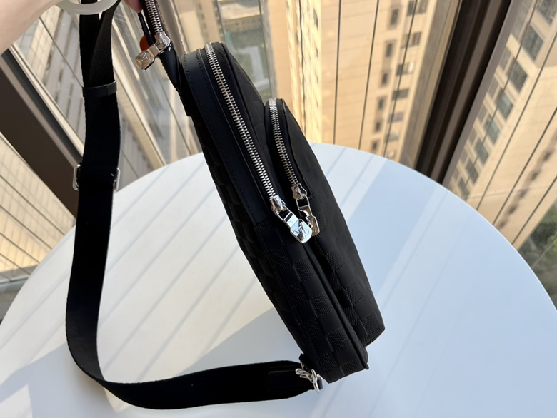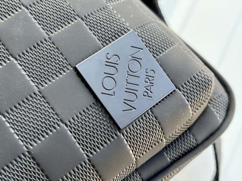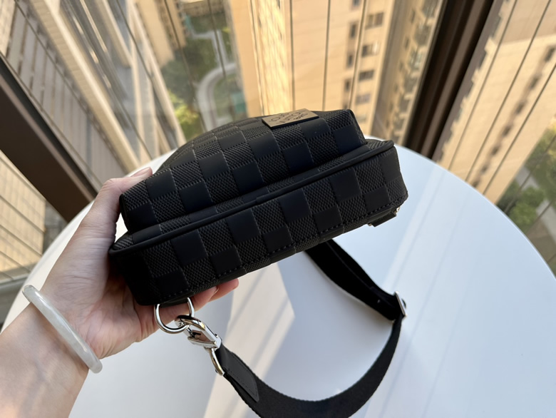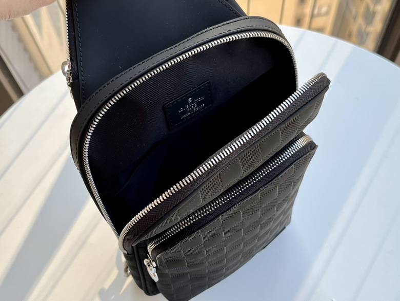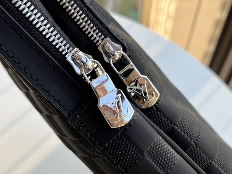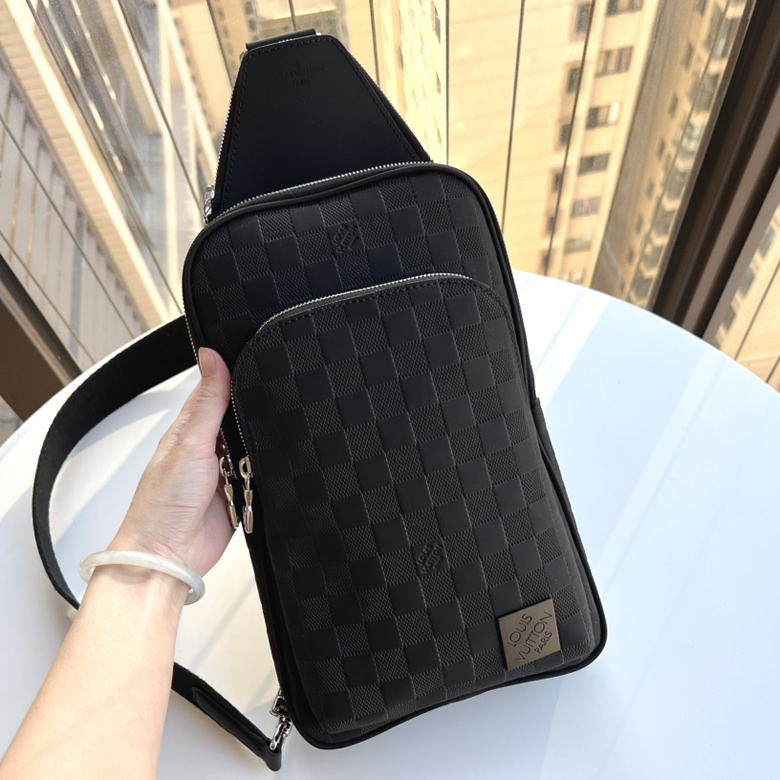本款 Avenue 單肩包於 Damier Infini 皮革錶面壓印經典棋盤格紋,可在不影響柔軟質感的同時保持圖案清晰度。