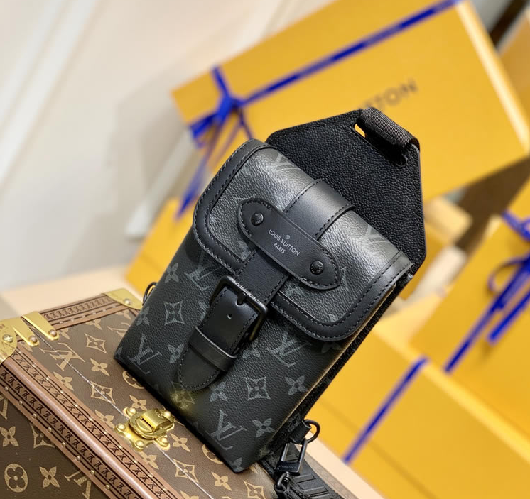 本款全新單肩包脫胎於 1986 年誕生的路易威登標誌性 Saumur 手袋。Monogram Eclipse 帆佈搭配代錶品牌傳統匠藝的皮革細節設計,如由標誌性鉚釘圈環固定的搭扣肩帶。小巧貼身,適合攜帶手機和其他小物件。