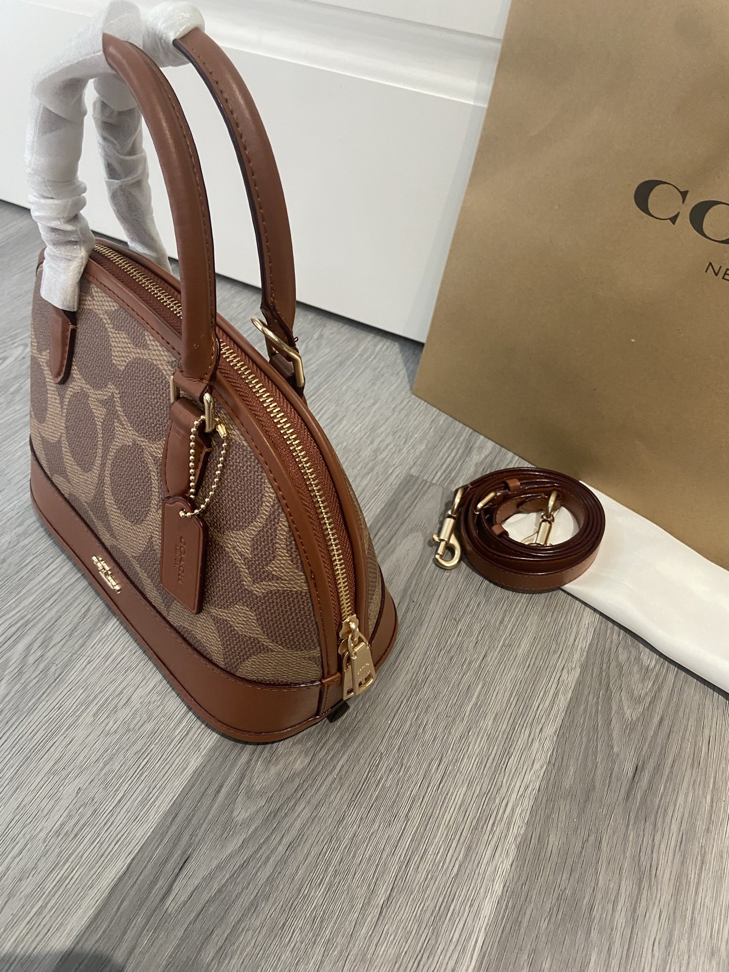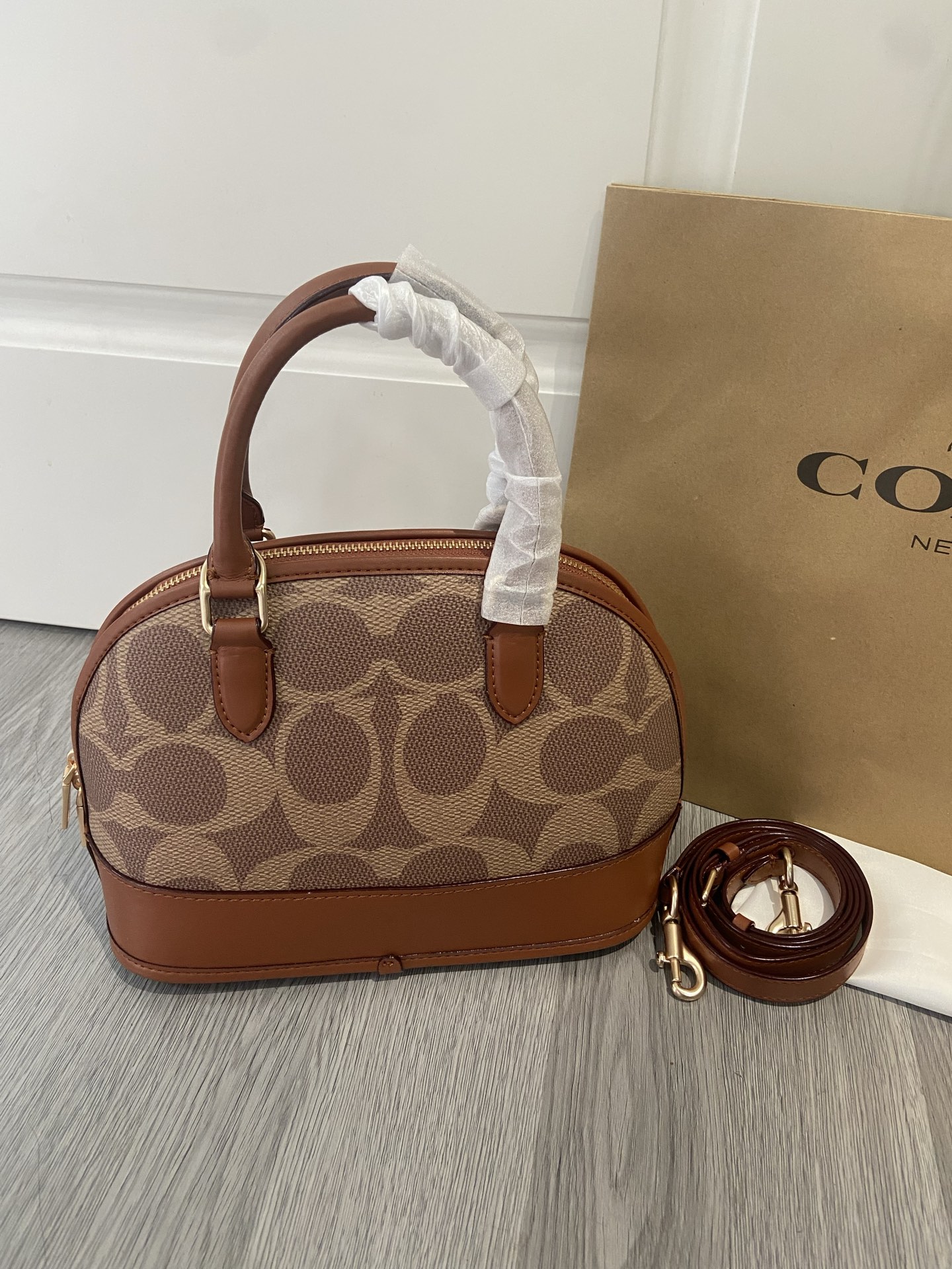 COACH 5月新品cAS19老花貝殼包蔻馳貝殼包經典包型真是永不過時啊 很有質感的焦糖色老花logo搭配這個包型真的很高級 尺寸26/19/12.5