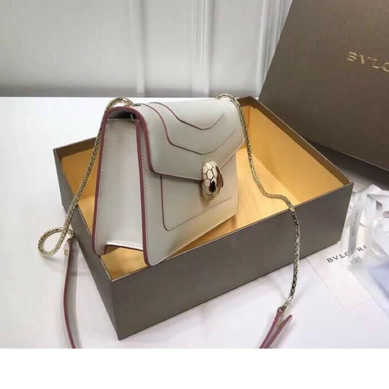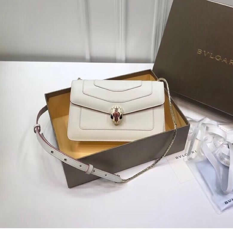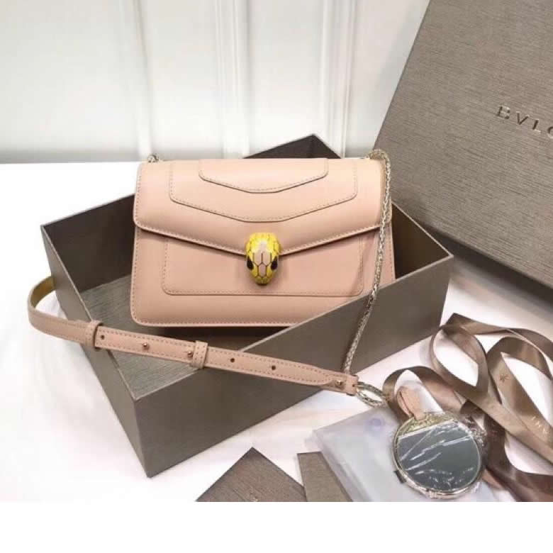 高仿一比一Bvlgari寶格麗Serpenti琺瑯單層蛇頭包 B39174粉/白