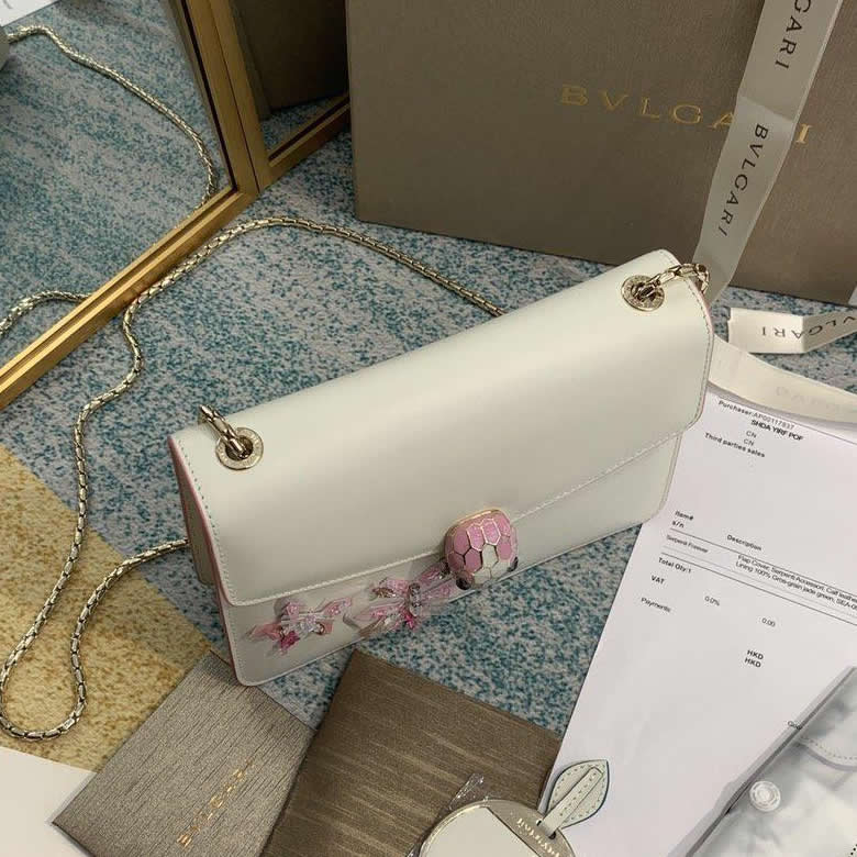原單寶格麗Bvlgari Serpenti Forever女士斜挎包法國玫瑰色小牛皮化妝鏡