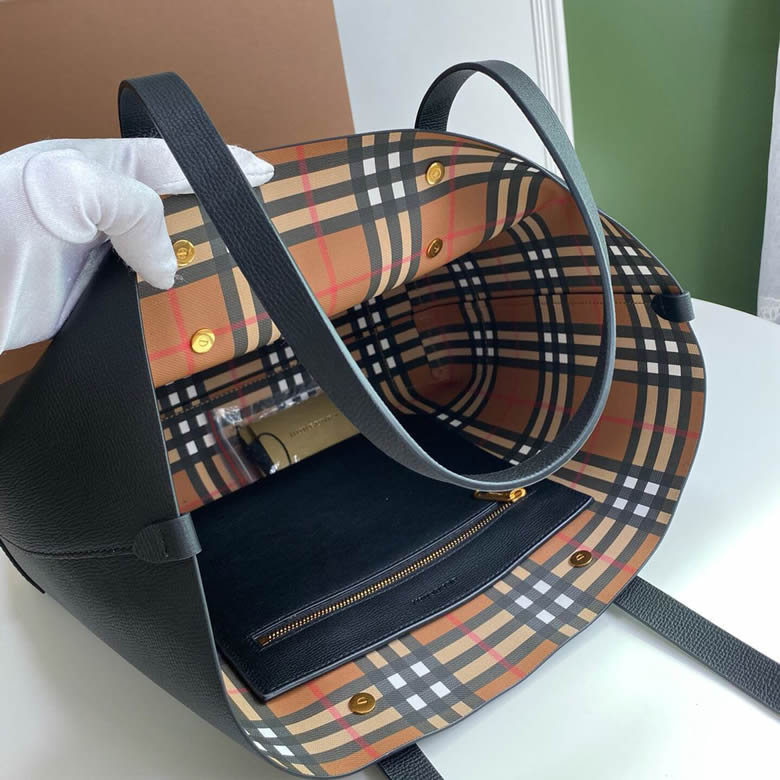 Burberry女包巴寶莉柔軟皮革材質Vintage復古格紋托特包