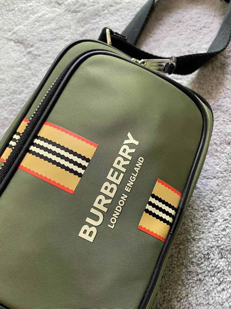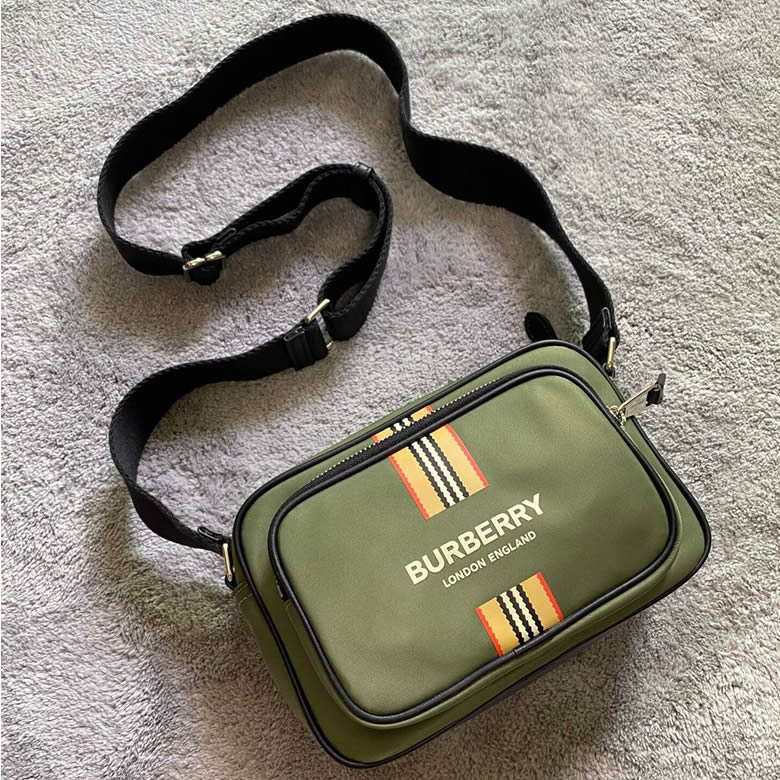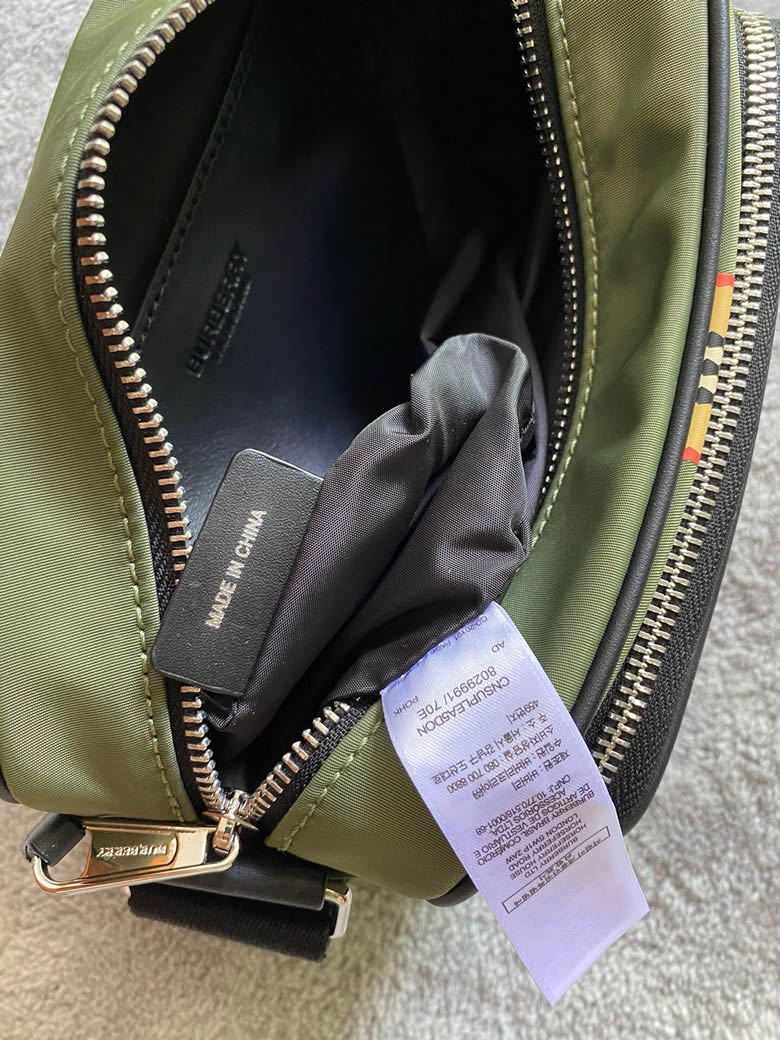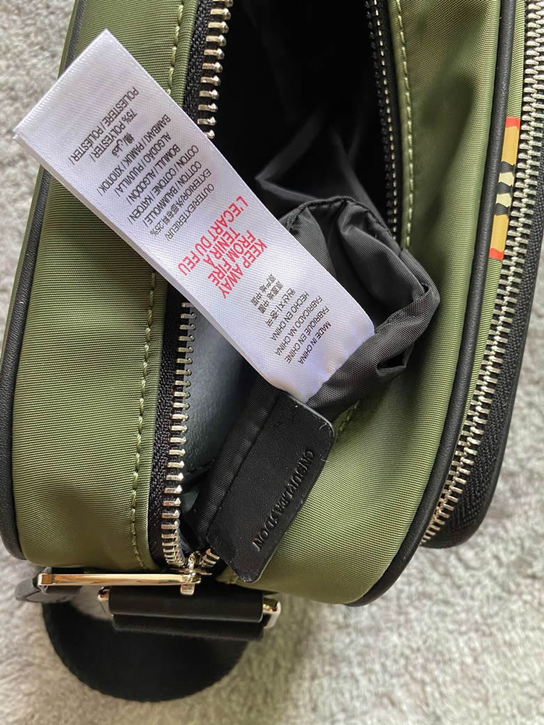 高仿Burberry男包巴寶莉進口客供尼龍面料黑色小牛皮飾邊相機包