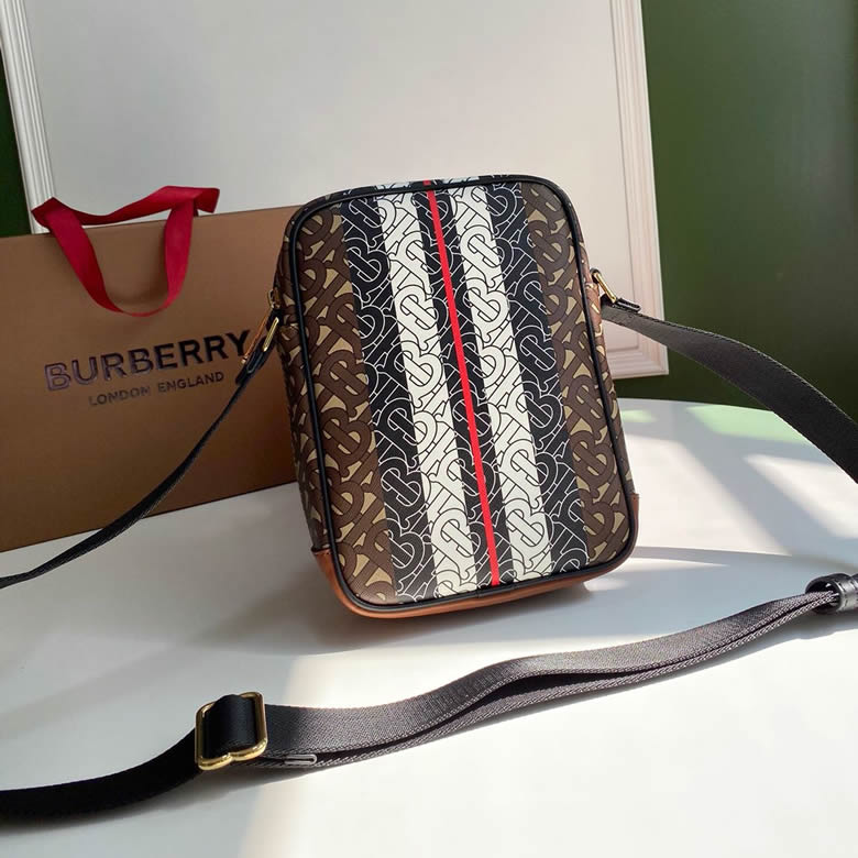 Burberry原單一比一巴寶莉環保帆佈專屬標識條紋斜背包
