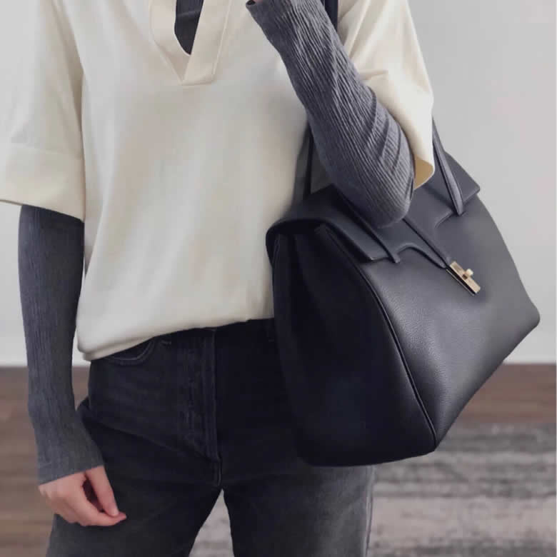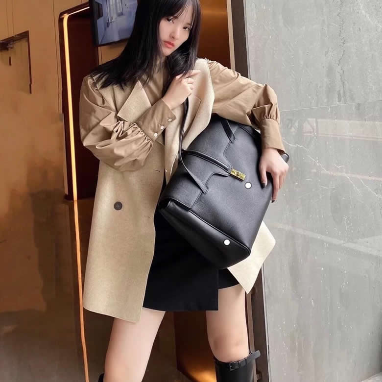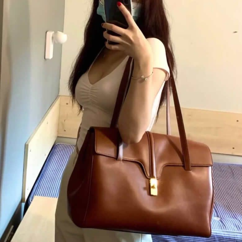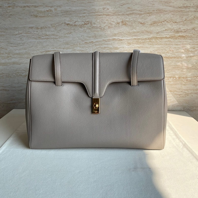 原單Celine/賽琳16大號柔軟粒面牛皮革柔軟手袋 194043黃褐/黑/灰