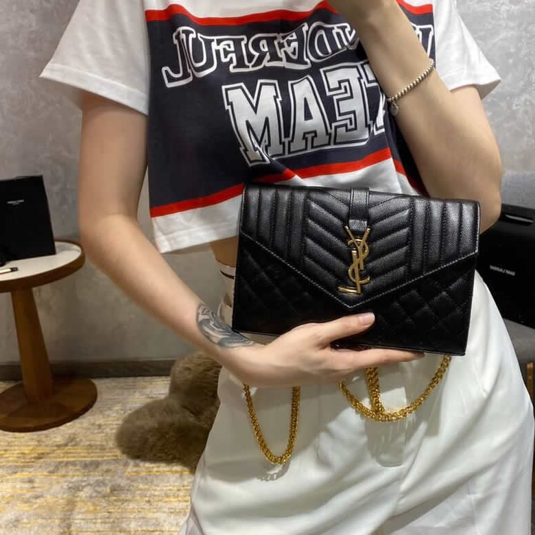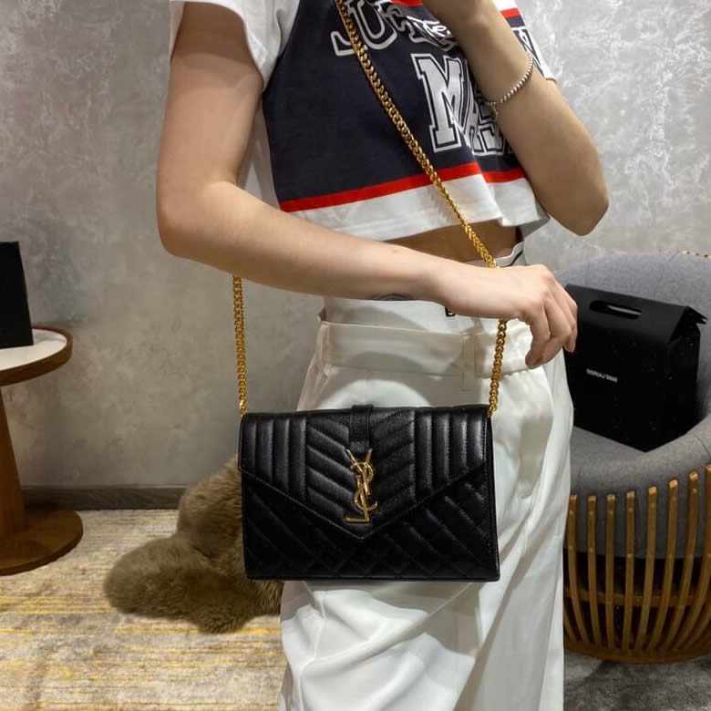原單聖羅蘭鏈條包女款MONOGRAM MIX MATELASSÉ粒面皮革 620280黑色白色
