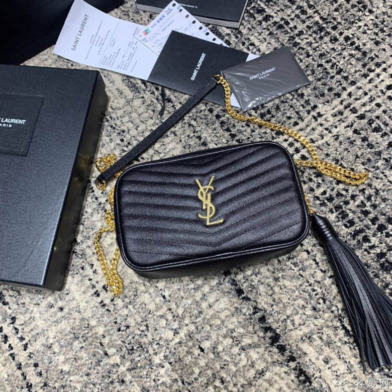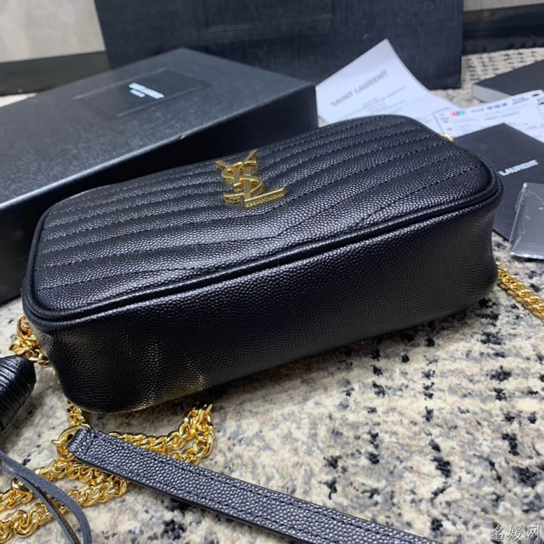 YSL/聖羅蘭LOU迷妳提花粒面壓花真皮包585040黑色