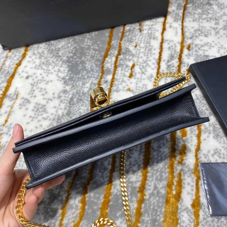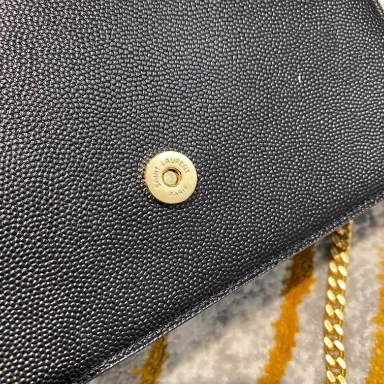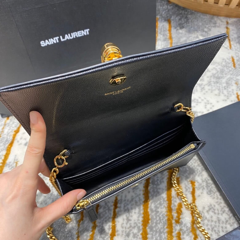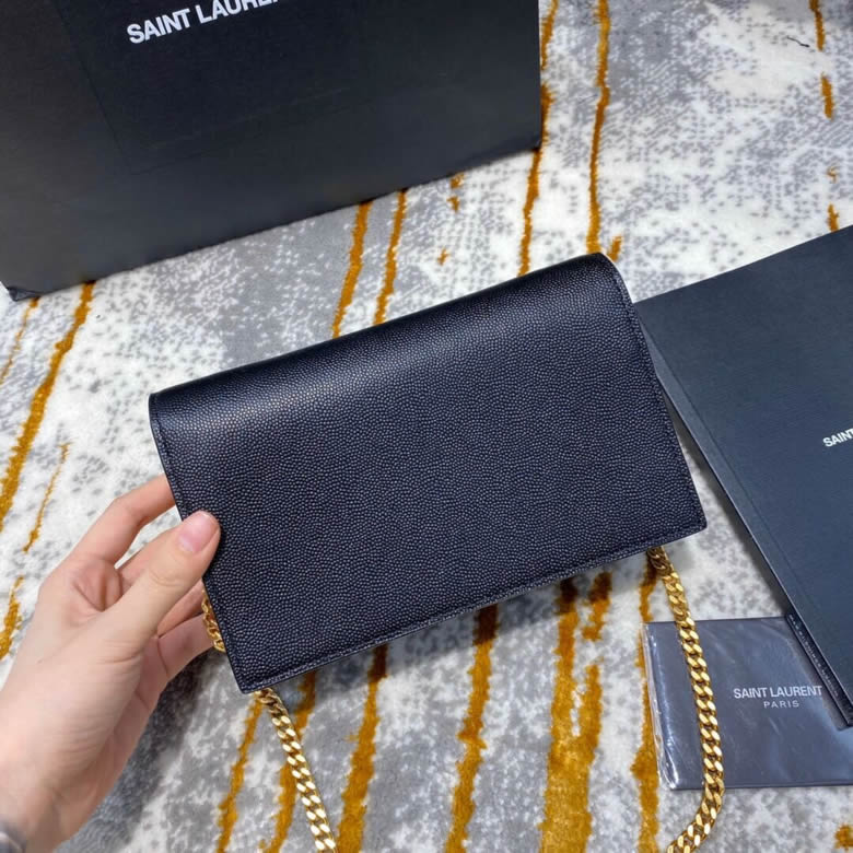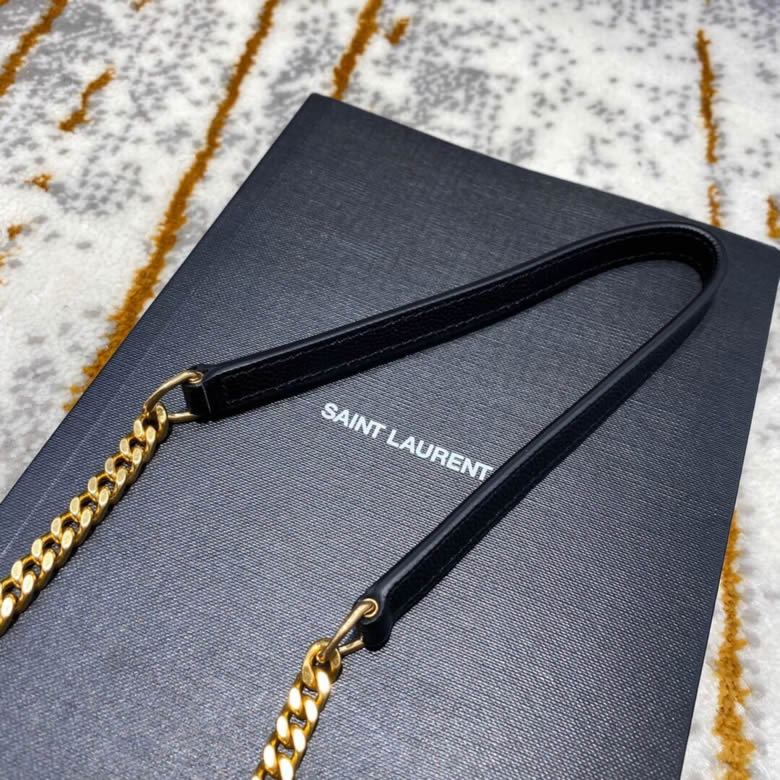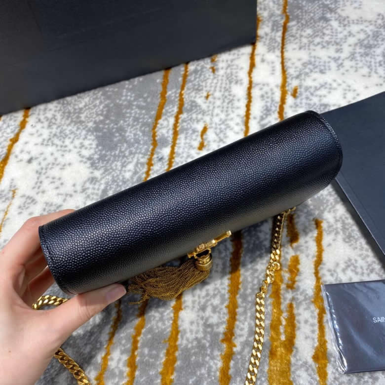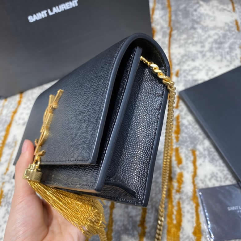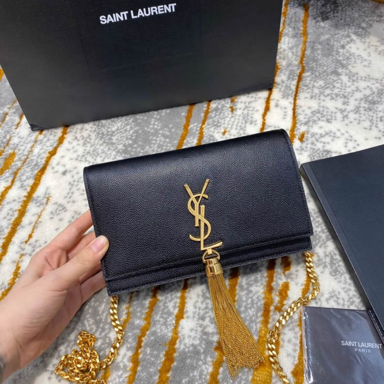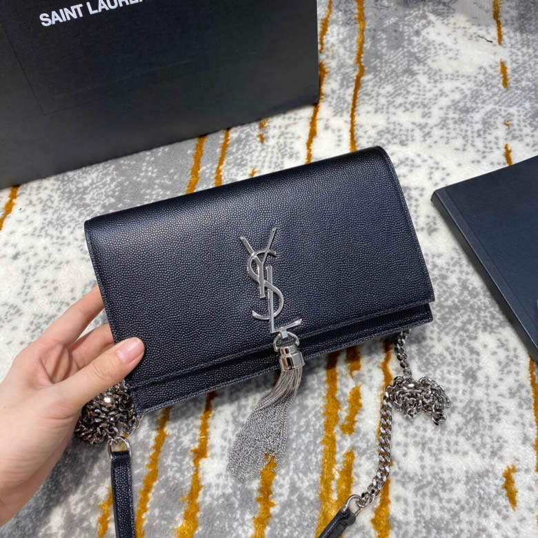 YSL/聖羅蘭MONOGRAM KATE 魚子醬流蘇鏈條包452159黑色銀/金扣