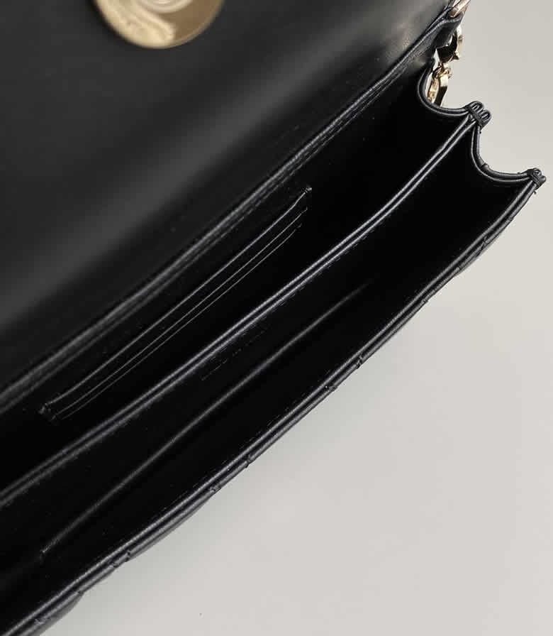 設有多個隔層和卡槽,可收納各種日常用品,是日裝和晚裝的理想良伴。搭配頂部手柄和飾以樹脂珠飾的可拆卸鏈條,可手提或斜挎。