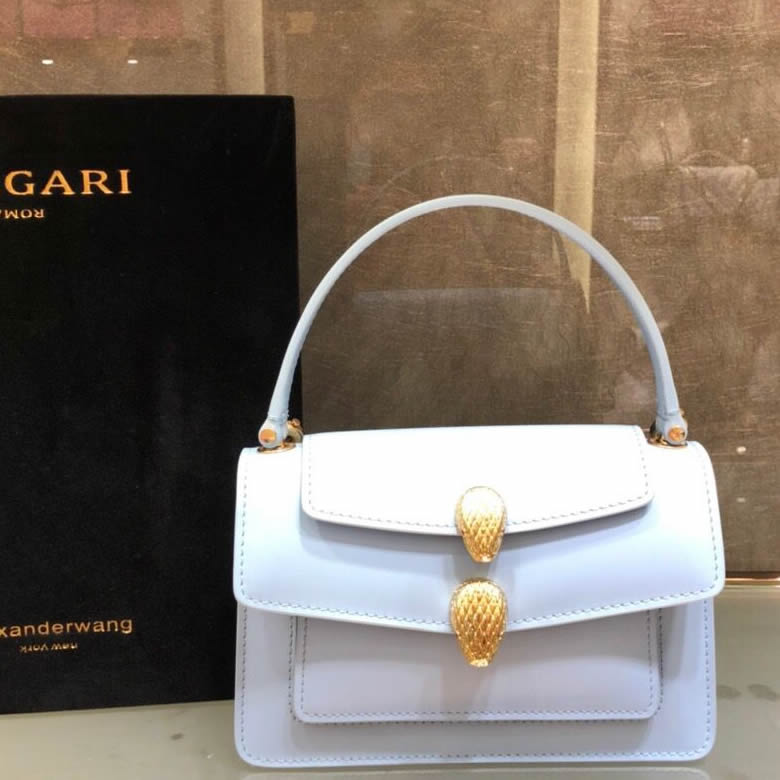 原單寶格麗Serpenti雙蛇首搭扣搭配迷人的紅色琺瑯蛇眼手提包288737淡藍¥2480.00