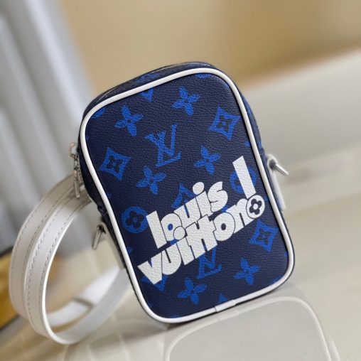 新款LV高仿男包 LV迷妳老花字體絲印挎包M46116藍色¥1480.00