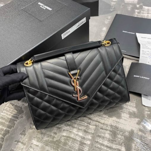 YSL/聖羅蘭最新版中號平紋三色logo絎縫真皮信封包487206黑色¥1980.00